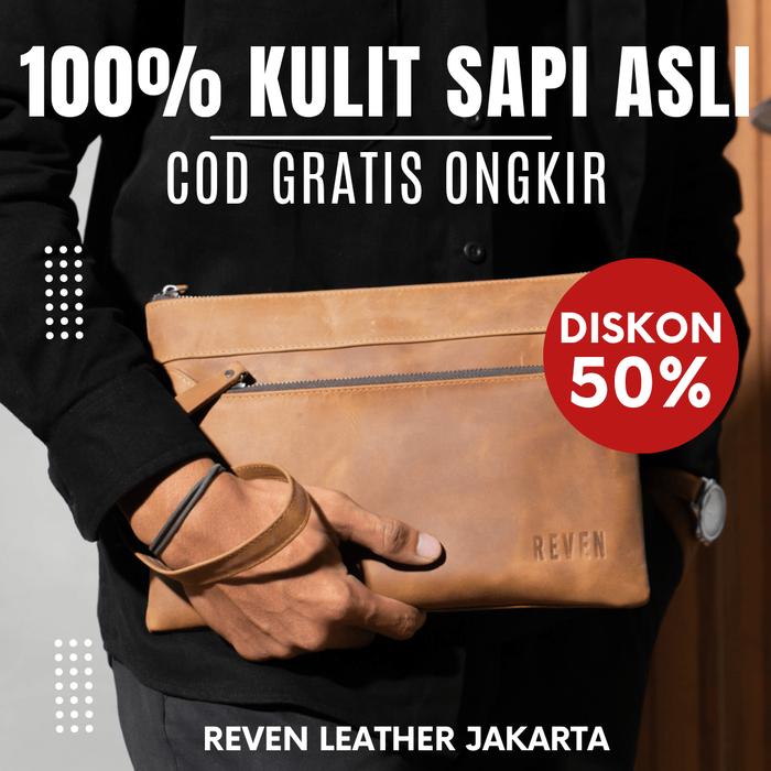 Reven Leather Jakarta - Darius Handbag Clutch Pria Tas Tangan Kulit Sapi Asli Muat Tab Ukuran 11