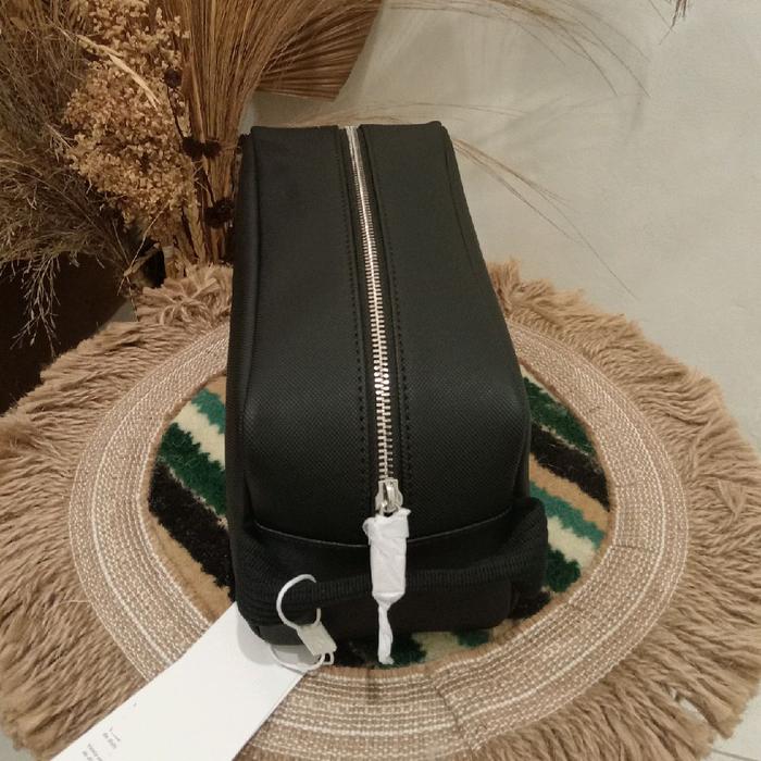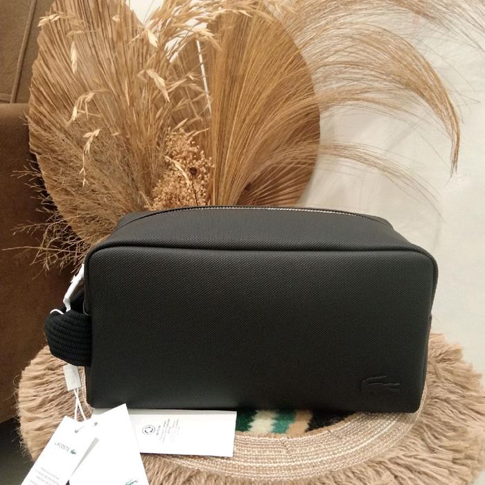 Lacoste Men's Classic Clutch Bag Canvas Toiletry Bag Noir Black