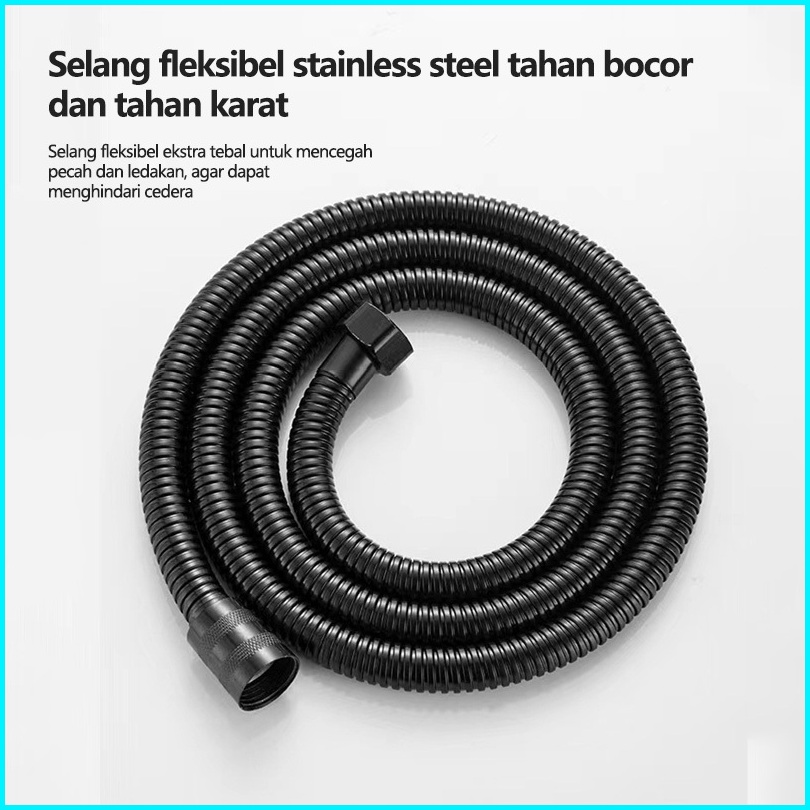 Paket Shower Genggam Shower Mandi Kran Cabang Shower Hitam Black Keran Pipa Penghubung Dudukan