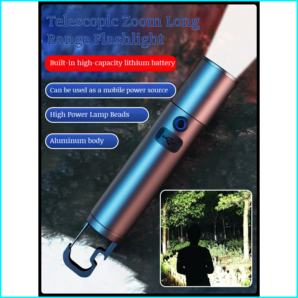 Produk Super Tunggal Kap Lampu Gratissenter Laser Zoom Multifungsi Yang Dapat Ditarik 1800mah Senter Cahaya Kuat Baru Se