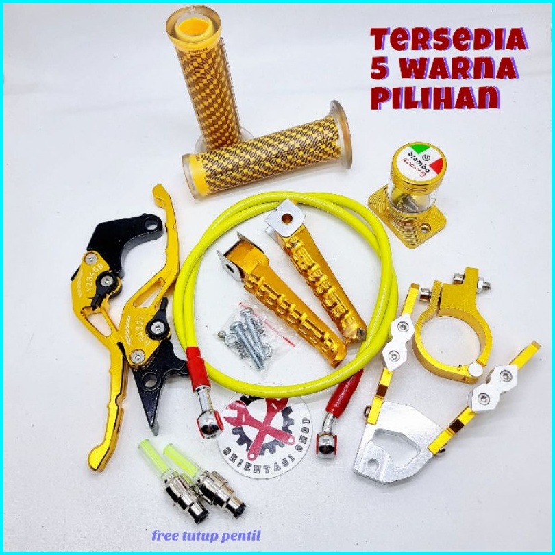 Handle Sisik Stelan Cnc Satria Fu Handgrip Carbon Selang Rem Depan 95cm Kleman Selang Footstep Vixion Stempel Kaca Free