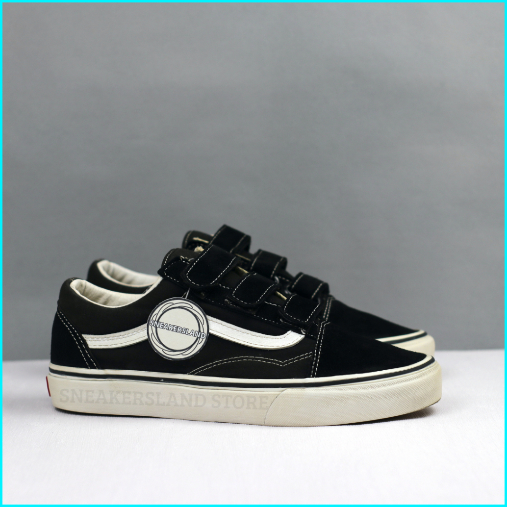 Sepatu Sneakers Old Skool Velcro Black White Kasual Oldskool Perekat Hitam Puith
