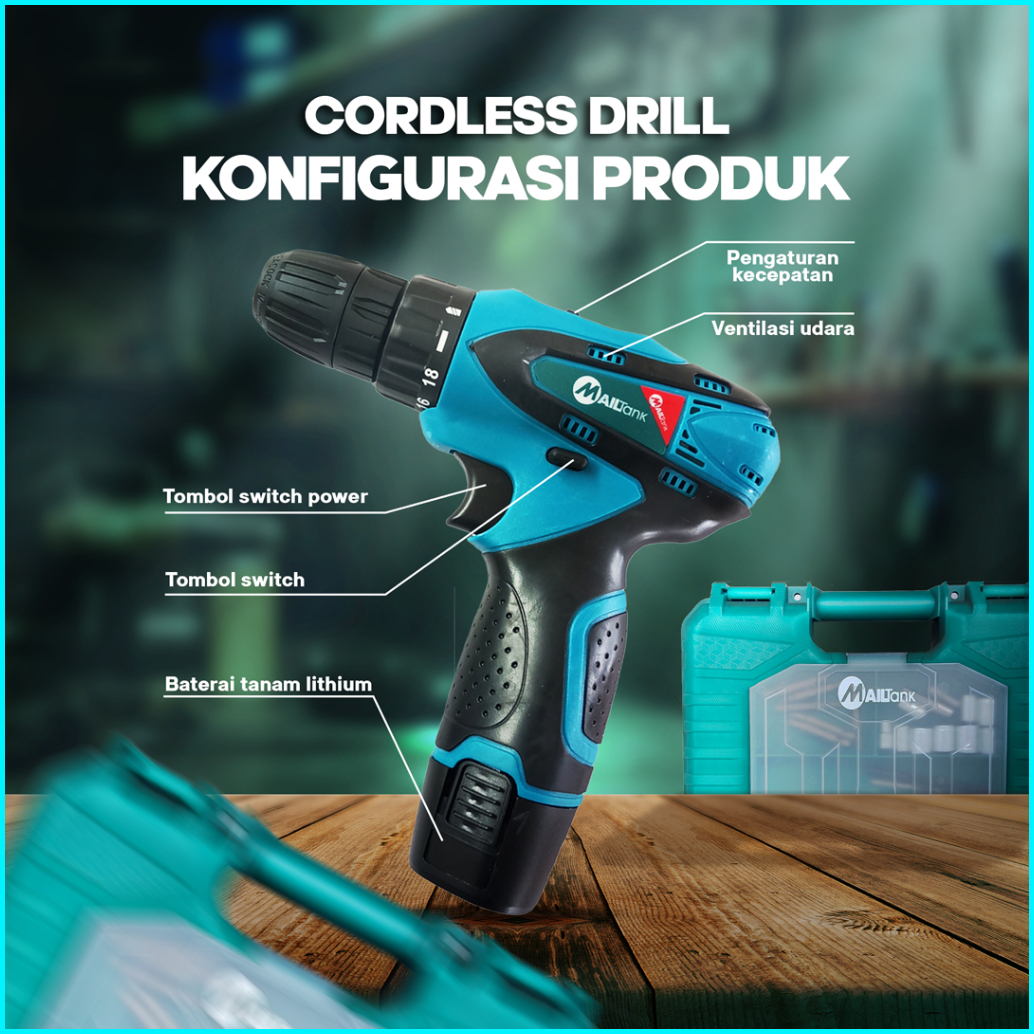 Mailtank Sh191 12v Bor Baterai 2baterai Bor Cas 1 Set Lengkap Murah Mesin Bor Tangan Mesin Bor Dengan Koper Dan Set Mata