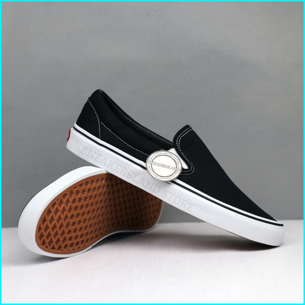 Sepatu Sneakers Slip On Classic Black White Kasual Selop Hitam Putih