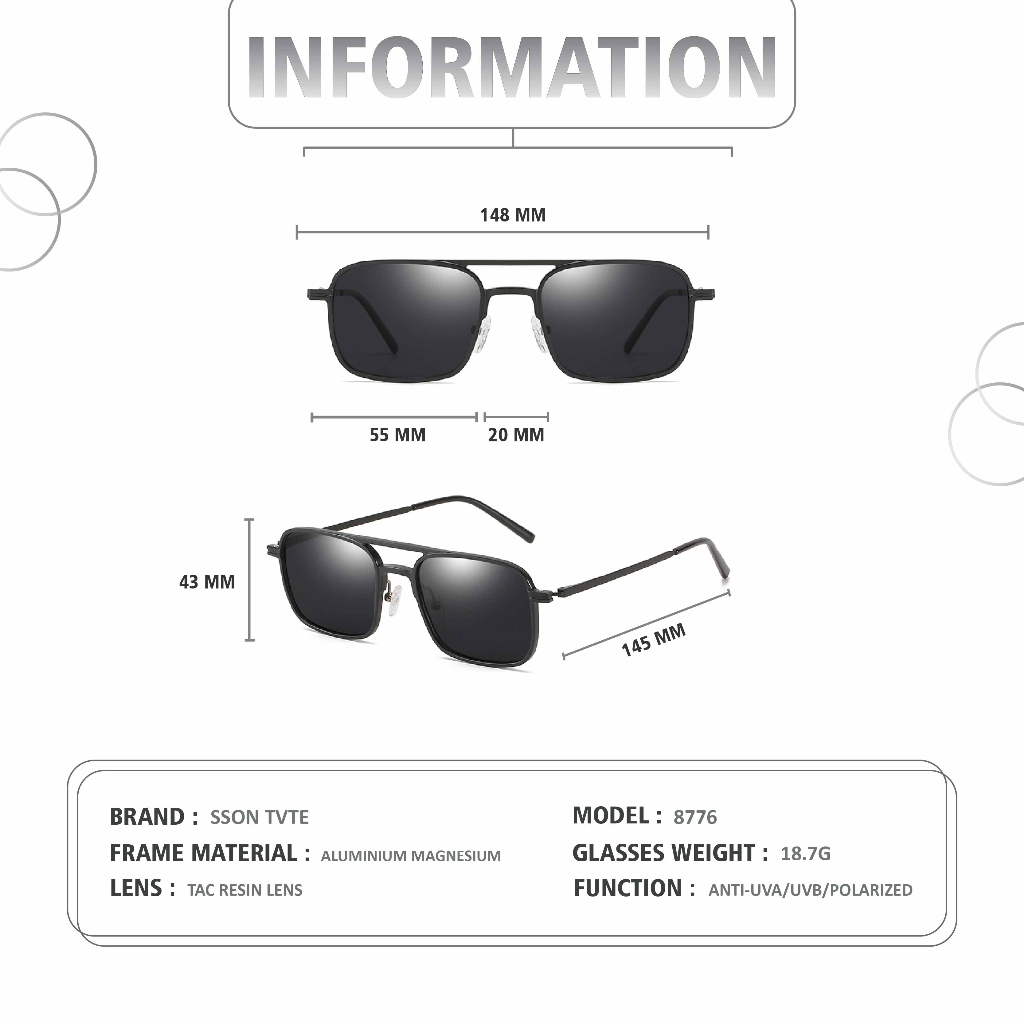 SSON TVTE Kacamata Hitam Sunglasses Polarized Anti UV400 Gaya Aviator Aluminium 8776
