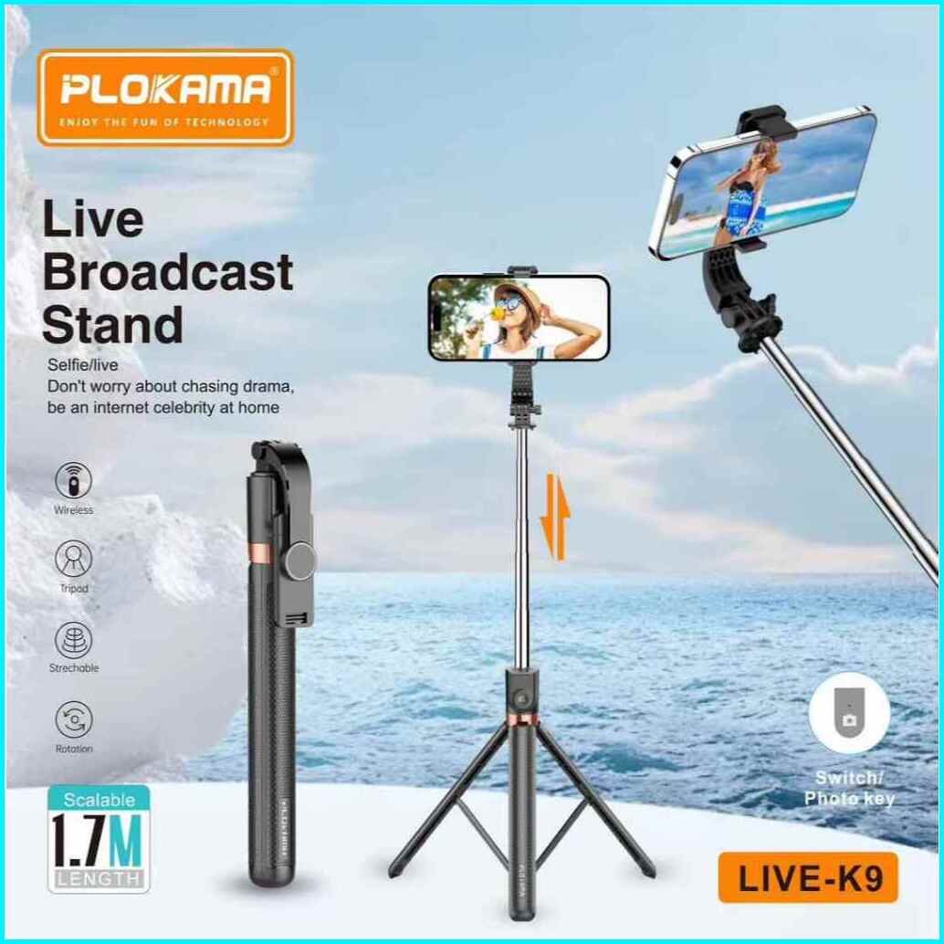 Plokama K9 Tongsis Tripod Bluetooth 3 In 1 Selfie Stick Tripod 170cm 1.7 Meter