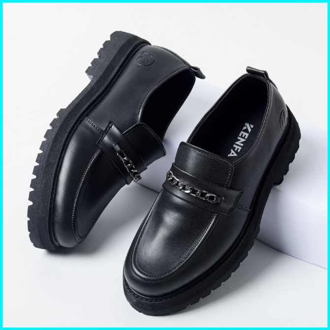 Kenfa - Benze Black Sepatu Formal Slip On Rantai Pria Wanita Pantofel Kuliah Kerja Kantor Tinggi