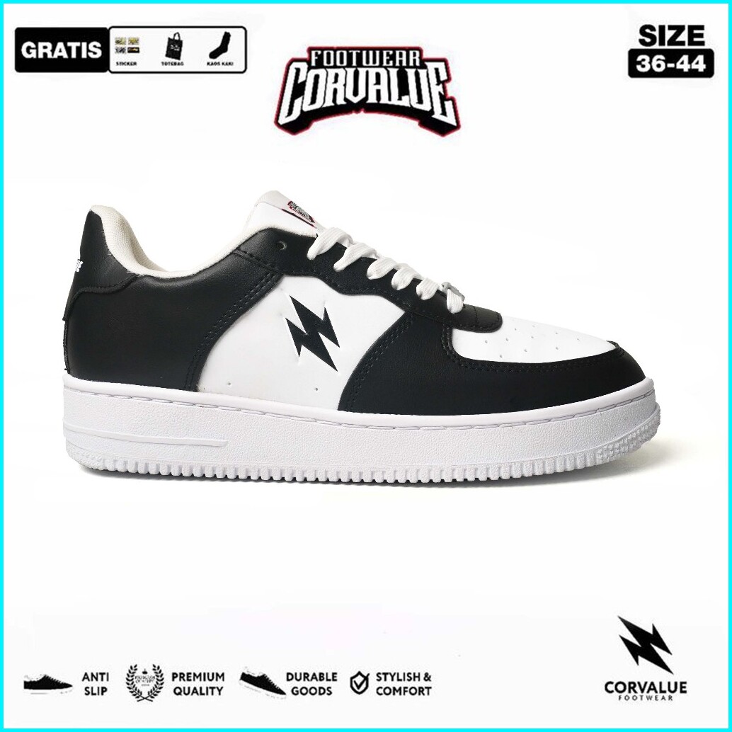 Corvalue - Sepatu Sneakers Kasual Corvalue Footwear Hiratsuka 007 Black White Original Casual Shoes