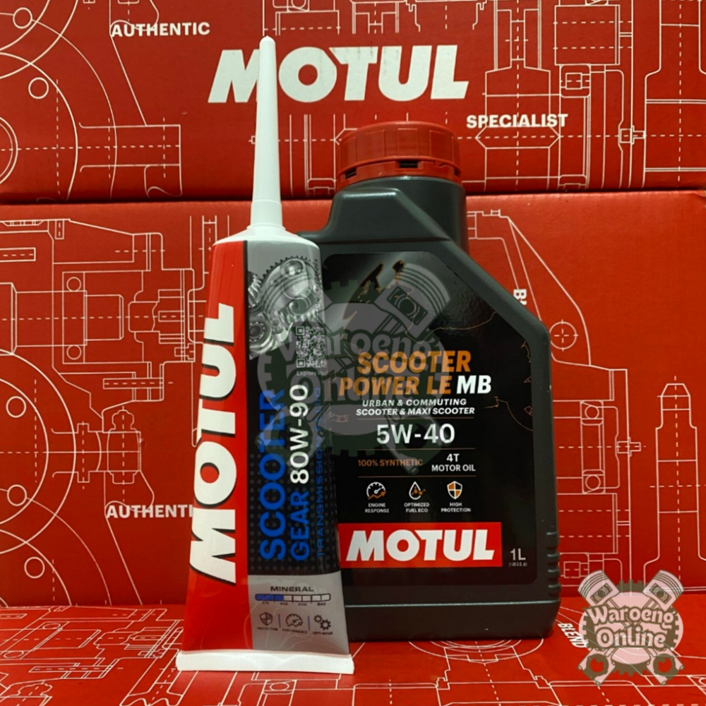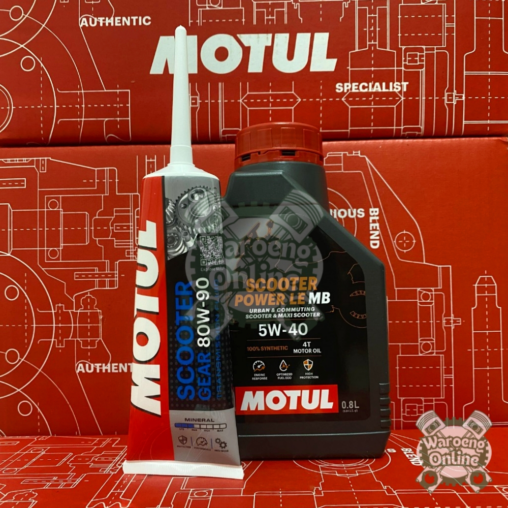 PAKET MOTUL SCOOTER POWER LE 5W40 100 PERSEN SYNTHETIC & SCOOTER GEAR 80W90 120ml KEMASAN 0.8L & 1L OLI MOTUL MOTOR MATIC