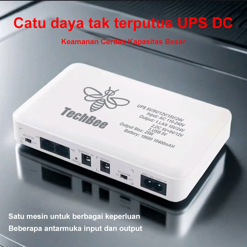 TechBee UPS Rer e DC 10400mAh 5V/9V/12V/15V/24V 2A wer Supply UPS Mini UPS Wifi CCTV