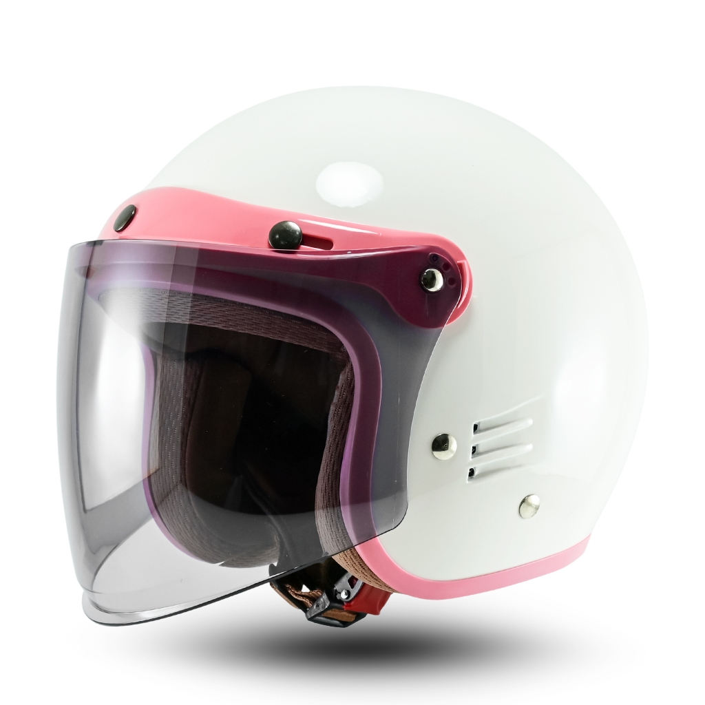 Helm Bipplast CEWEK Retro Bogo Solid LUMINOS Wanita Kekinian Kaca Datar SNI Motorcycle