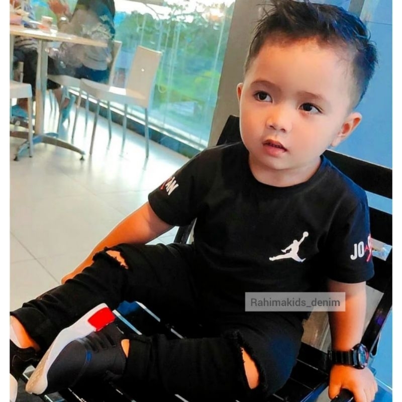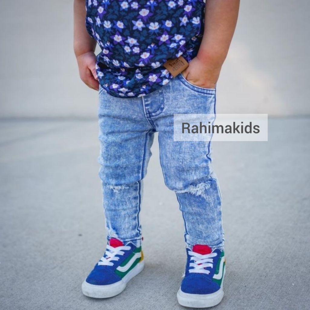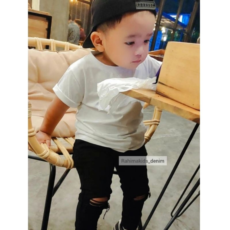 Celana Jeans Anak Black Jeans Soft Denim Strech Skinny Fit Hitam Ripped Sobek Ukuran 1 Tahun S/D 12 Tahun