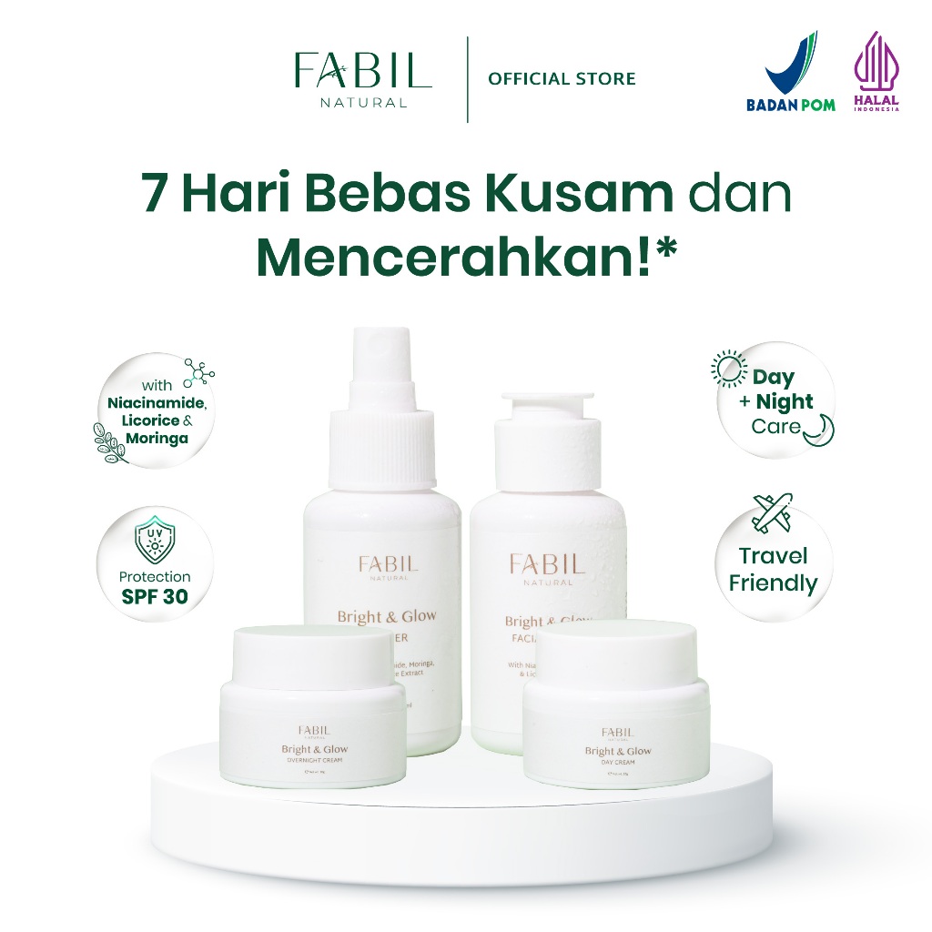 Fabil Bright & Glow Kit - Paket Perawatan Kecantikan Yang Terdiri Dari Facial Wash, Toner, Daycream dan Nightcream Untuk Kullit Cerah
