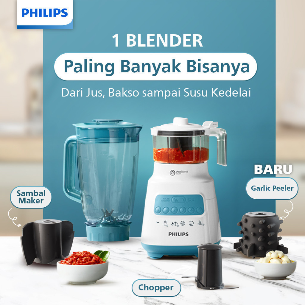 Blender Philips Plastik 2 liter - 5000 Series HR2223/70 - Blender jus - Blender bumbu philips (Chopper, Pembuat Sambal, Pengupas Bawang) - Blender Serbaguna - Blender Terbaik - Misty Dawn