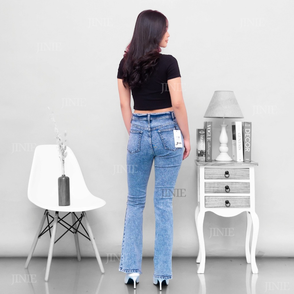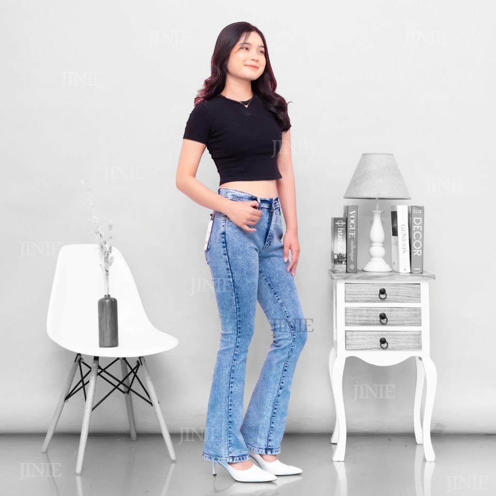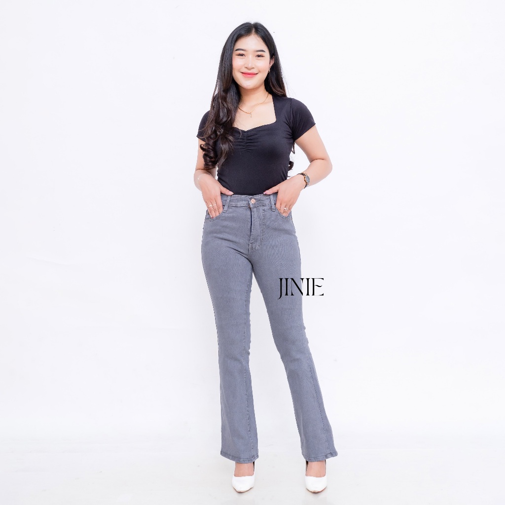 Celana Cutbray Jeans Wanita Jumbo Celana Jeans Wanita Cutbray Ziper Waist Bige Size