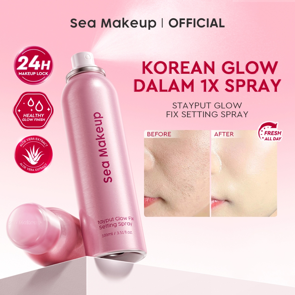 [NEW LAUNCH NOW!] Sea Makeup Stayput Glow Fix Setting Spray - Longlasting Makeup 24 Jam Continuous Glowing Korean Glass