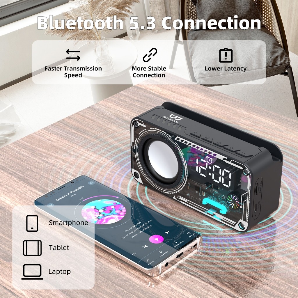 GOOJODOQ AB4088 Jam Speaker Bluetooth Speaker 5.3 Surround Sound System RGB Multifunction Alarm Clock Smart Speaker