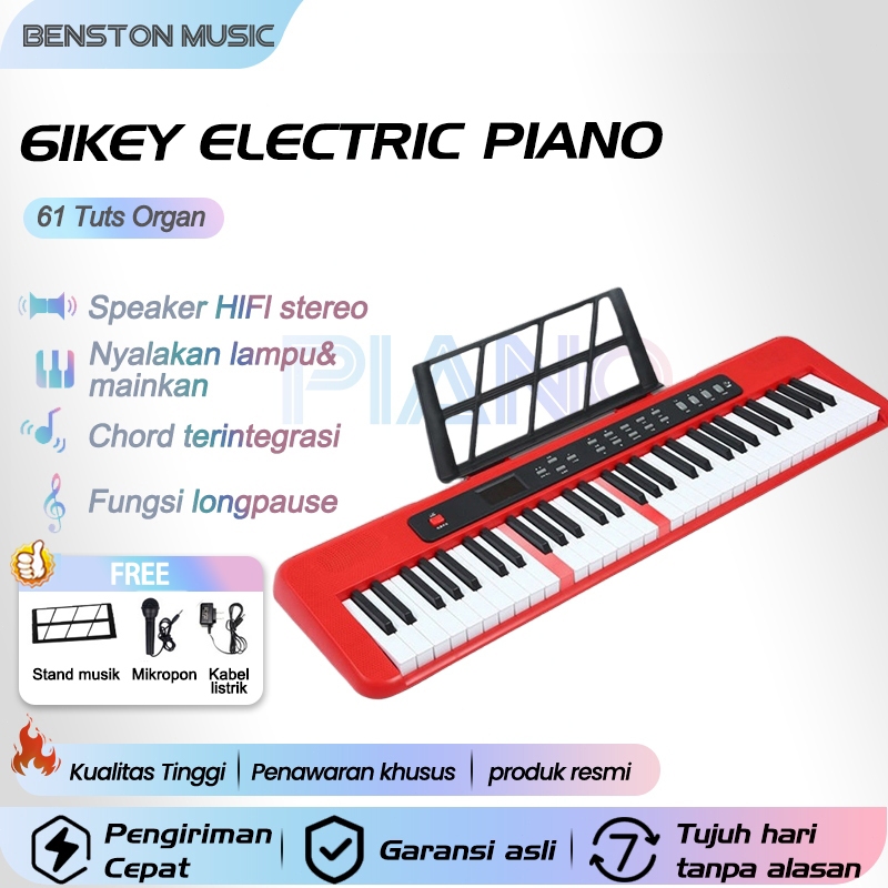 Benston Music - Keyboard elektrik portabel profesional 61 tuts keyboard elektrik tingkat pemula dewasa dan anak