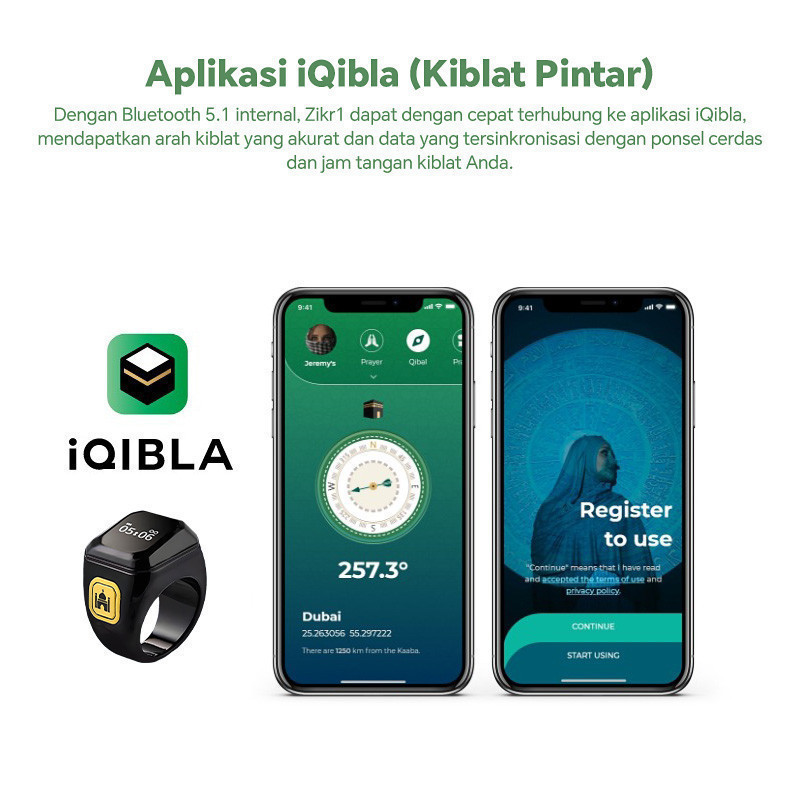 Miseni Muslim Zikr Ring Tasbih Digital Cincin Oled Display Smart Ring Bluetooth,App Control,Multi-Fungsi Pengingat Doa,A
