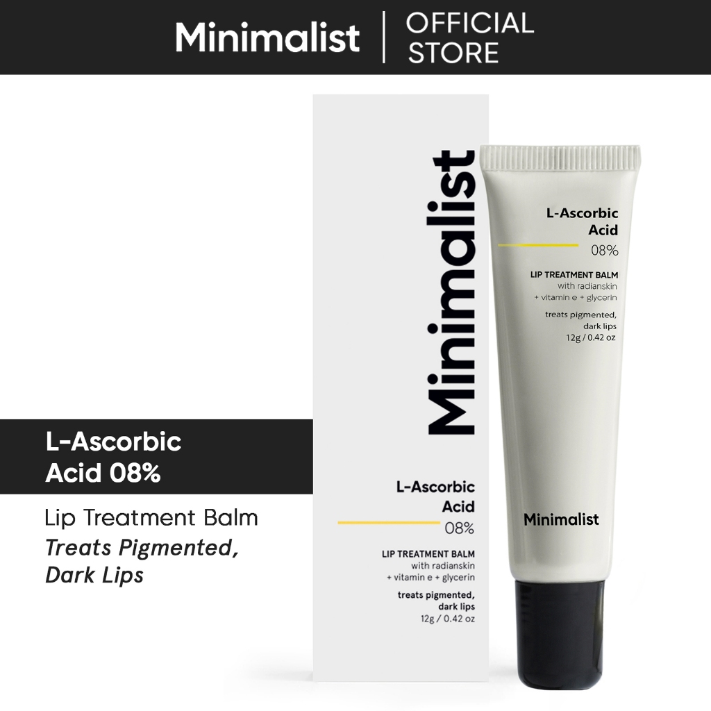 Minimalist 8 PERSEN L-Ascorbic Acid Lip Brightening Balm | Perawatan untuk Bibir Kering & Pigmentasi | Lipbalm dengan Vitamin E