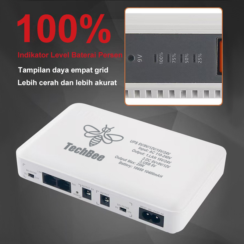 TechBee UPS Rer e DC 10400mAh 5V/9V/12V/15V/24V 2A wer Supply UPS Mini UPS Wifi CCTV