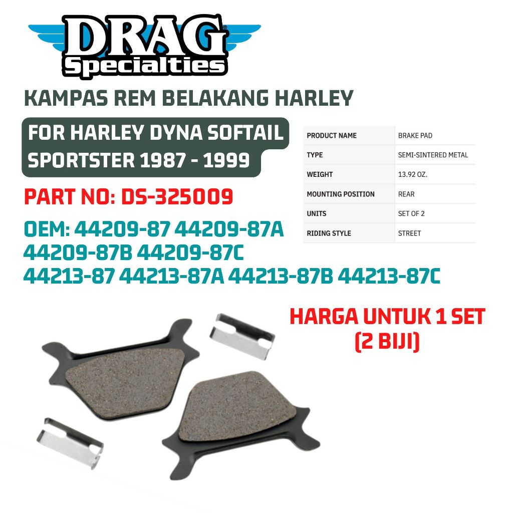 KAMPAS REM BELAKANG HARLEY DYNA SOFTAIL SPORTSTER FOR HARLEY DYNA SOFTAIL SPORTSTER 1987-1999 DS-325009 OEM 44209-87 44209-87A 44209-87B 44209-87C 44213-87 44213-87A 44213-87B 44213-87C