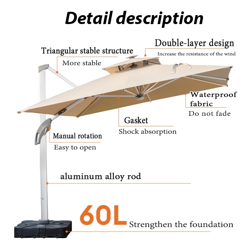 2.5M Payung Taman Tenda Lipat Payung Ran Cafe Payung Teduh Matahari Umbrella Pelindung Bulat Dengan Dasar