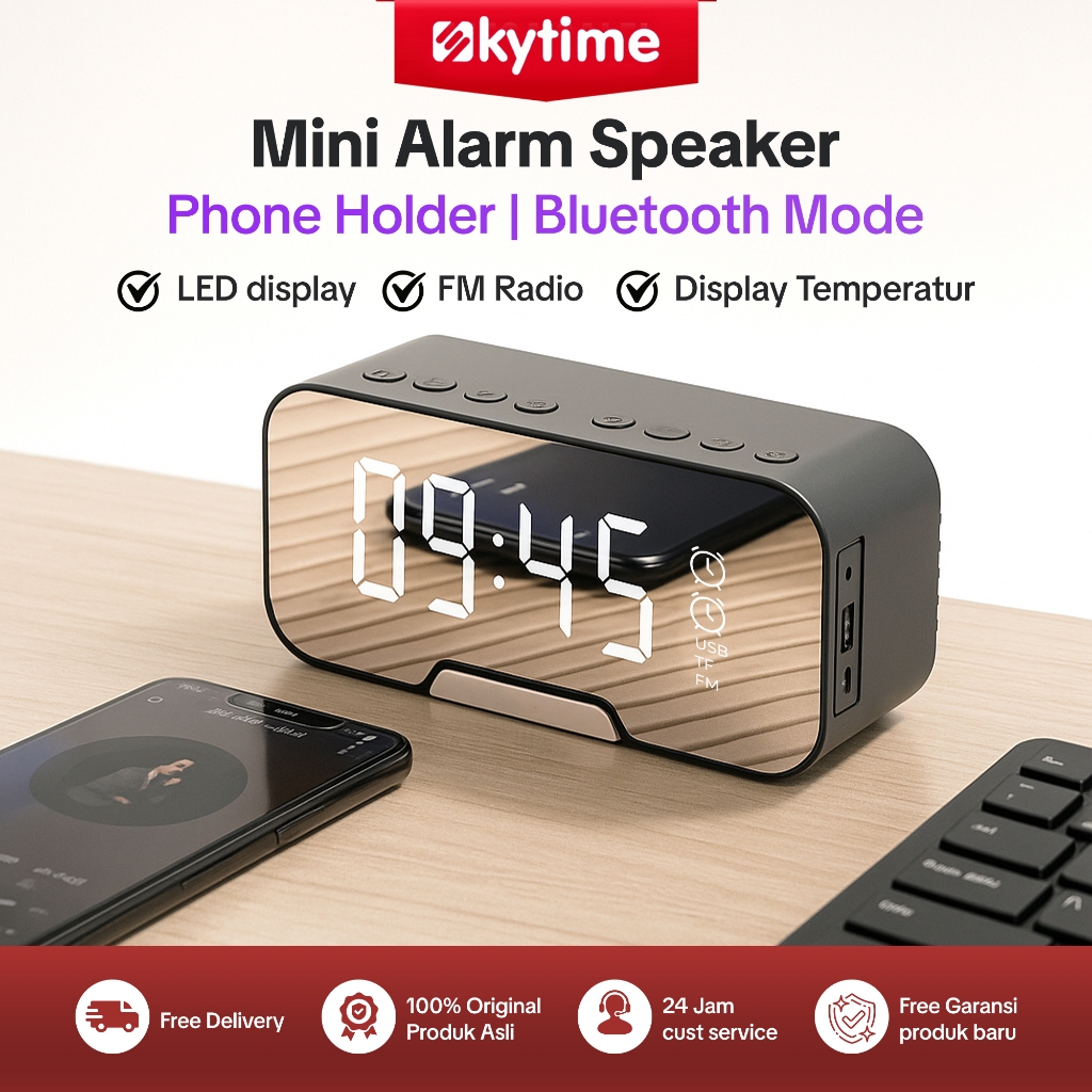 Skytime S10 Speaker Bluetooth Jam LED Display Alarm FM Radio Wireless Clock Smart Speaker