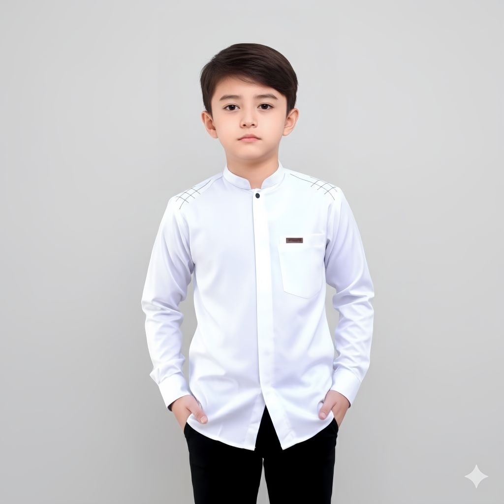 Baju Koko Anak Laki-laki Alqorni Lengan Panjang Koko Muslim Anak Terlaris – Bahan Adem, Anti Gerah, Nyaman Dipakai, Coco