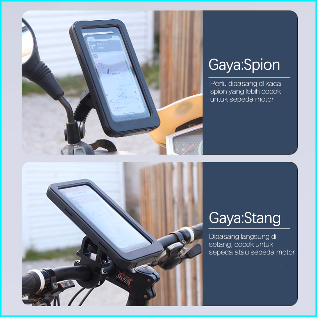 Phone Holder Motor Waterproof Tempat Dudukan Hp Di Stang Sepeda Anti Air Stand Dan Spion Handphone Kereta