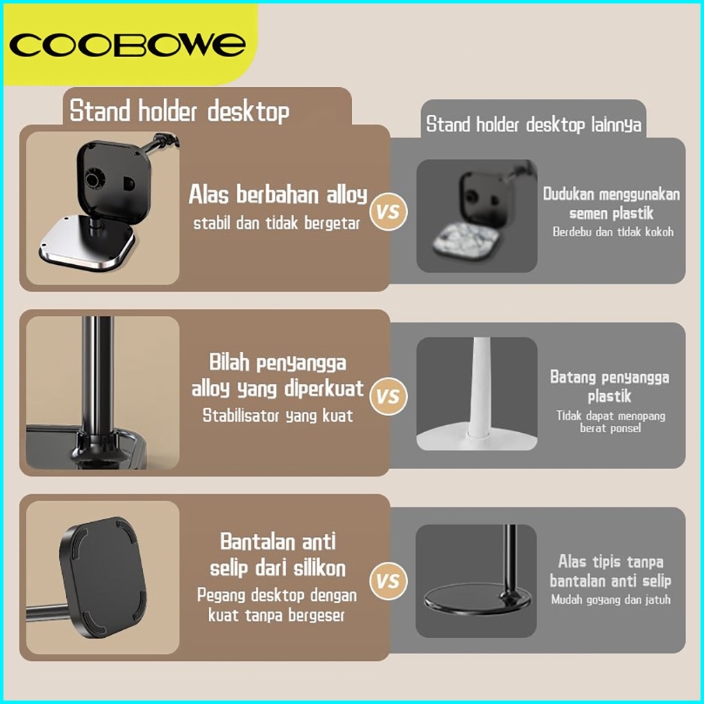 Coobowe Desktop Standing Holder Hp Flexible Lifting Aluminium Phone Stand Hp Meja Dudukan Handphone Universal Phone Hold