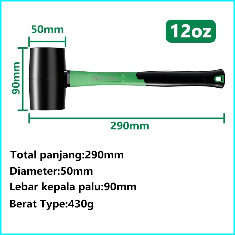 Isku Palu Karet 8oz 12oz 16oz - Warna Hitam Untuk Pekerjaan Keramik Dan Bangunan
