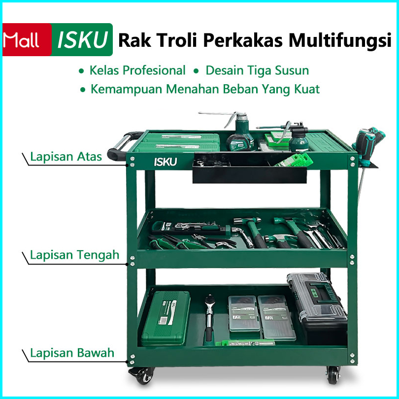 Isku Trollies Bengkel Rak 3 Susun Trolly Trolley Perkakas Tools Tool Cart Rak Alat Perkakas Trolly Galon Trolley Alat Ke