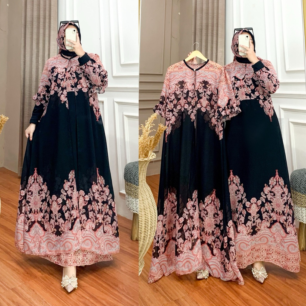 JENNA DRESS ROMPI PISAH SEt HIJAB CERUTY PRINTING MOTIF GAMIS MEWAH ELEGAN GAMIS BERKUALITAS