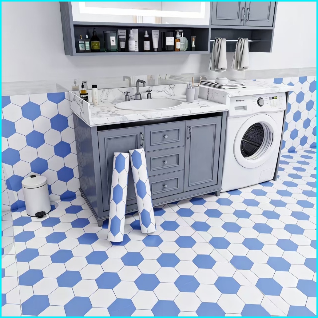 Stiker Lantai Kamar Mandi Pvc Stiker Perekat Wallpaper Lantai Kamar Manditahan Air Wallpaper Kamar Mandi Dinding Non-sli