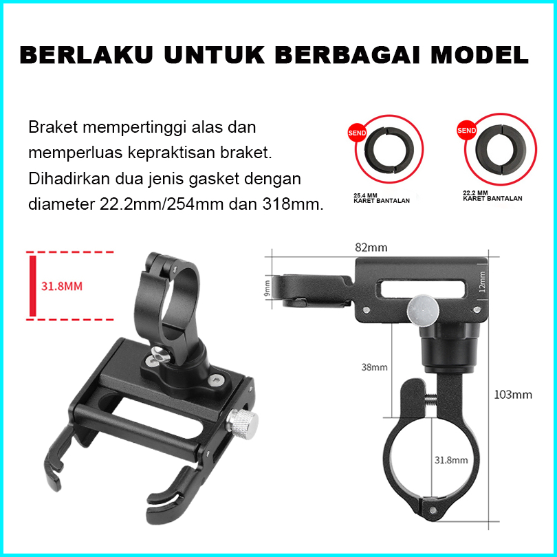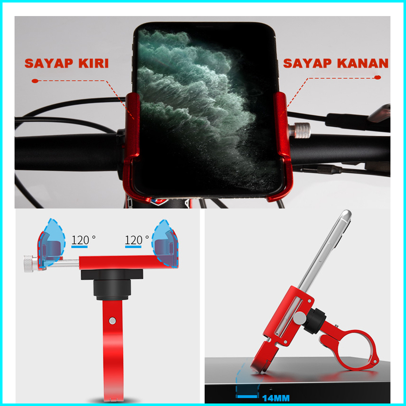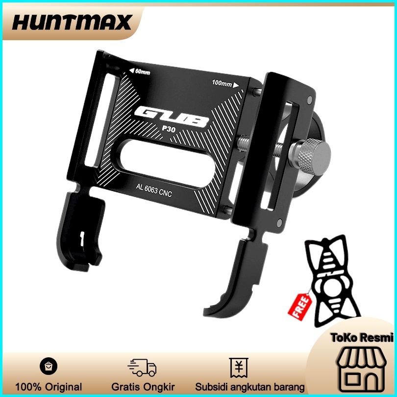Huntmax Gub P30 Holder Hp Motor Full Besi Alumunium Alloy Breket Tempat Handphone Dudukan Penyangga Tatakan Ponsel Di St