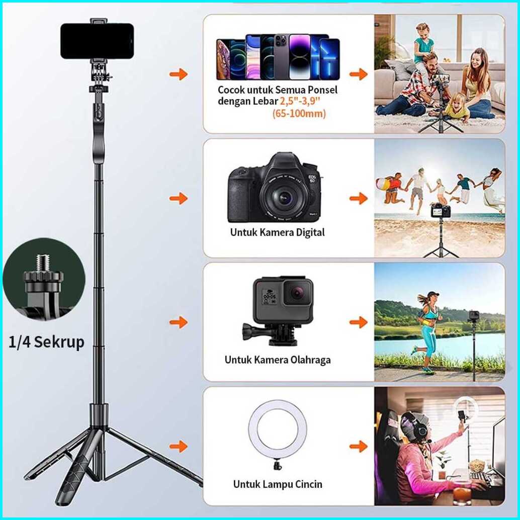 Dl L16 Tongsis Tripod Bluetooth Selfie Stick Remote Tripod Hp Kamera Dslr Tongsis 1800mm Dengan 1 4 Adaptor