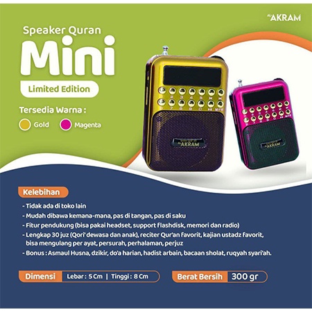 Speaker Quran Murotal Al-Akram 30 Juz Bisa Powerbank Spiker Al Qur'An 30 Juz Sepeker Alquran Terbaru Hafalan Anak Hafidz