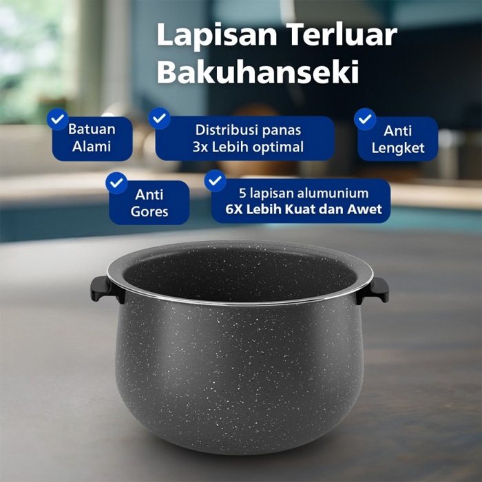 Philips Rice Cooker 1.8 Liter HD 3210 / HD3210/32 - Magic Com 3 in 1 Bakuhanseki Coating Green