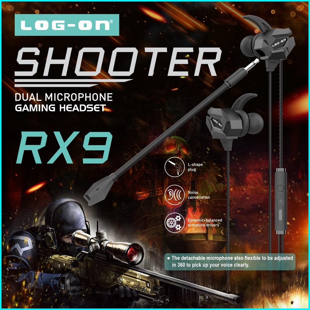 Log On Headset Gaming Dual Microphone Lo-rx9 Shooter Handsfree Earphone