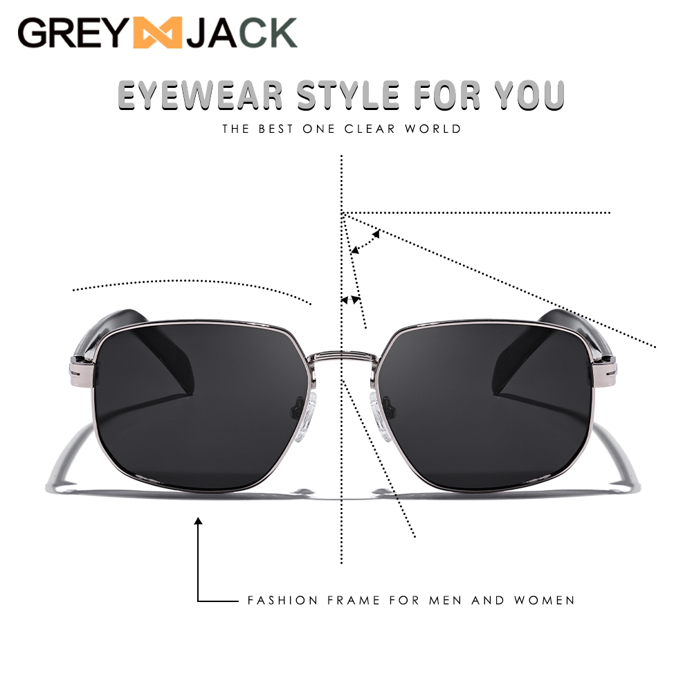 Grey Jack Kacamata Sunglasses Polarized Kotak Bahan Metal HD Lens Fashion Pria Wanita Anti Silau UV400 2176