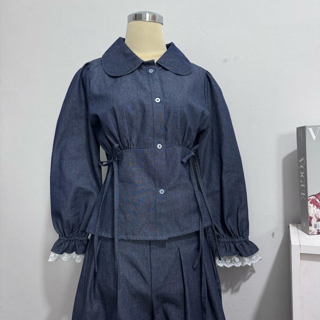 Zoey Lace Shirt - Denim On Denim Collection by WELAVIT | Atasan denim Wanita | Atasan Kemeja Denim Wanita