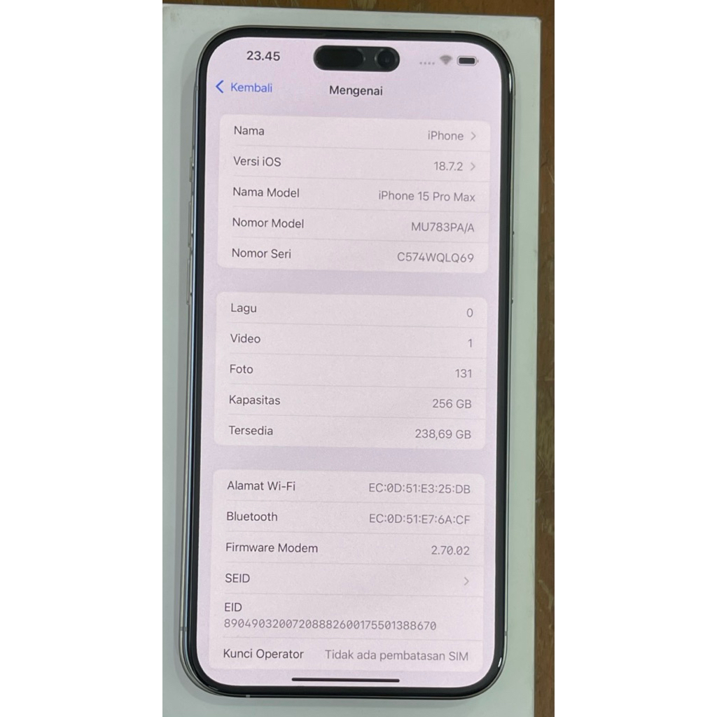 Hp Second iPhone 15 Pro Max 256GB IBOX Fullset