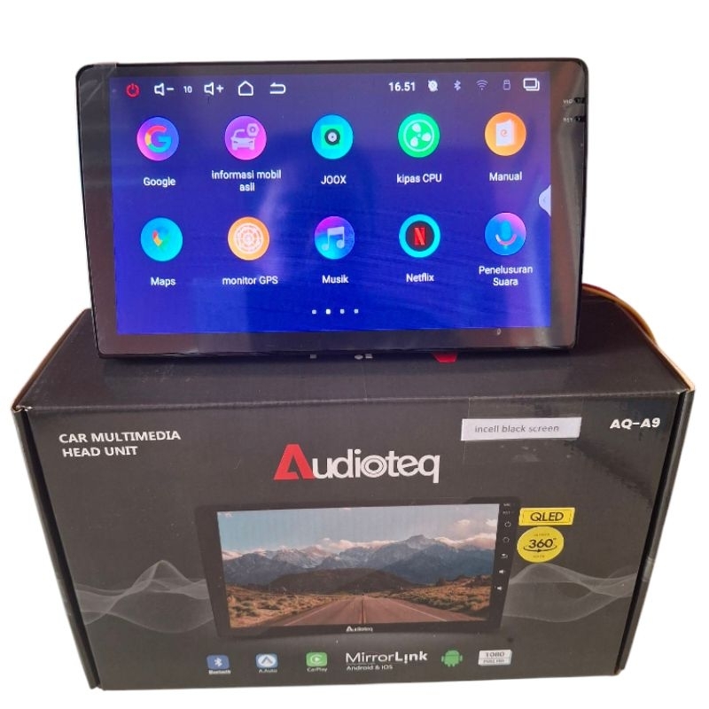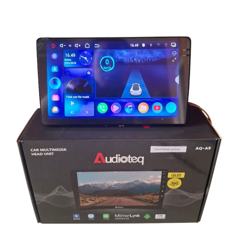 Head unit android 9 inch audioteq AQ-A9 ram 3+32 incell black screen support kamera 360 QLED