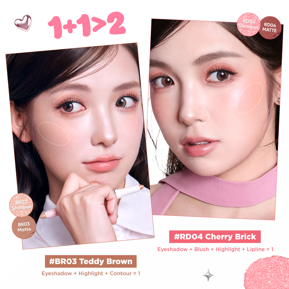 [NEW]PINKFLASH Flash-To-Go Duo Eyeshadow Stick Matte Shimmer High Pigmented Blendable Smooth Transfer-proof Lasting