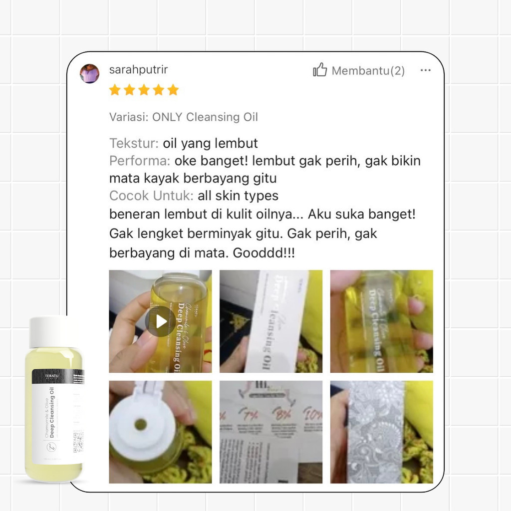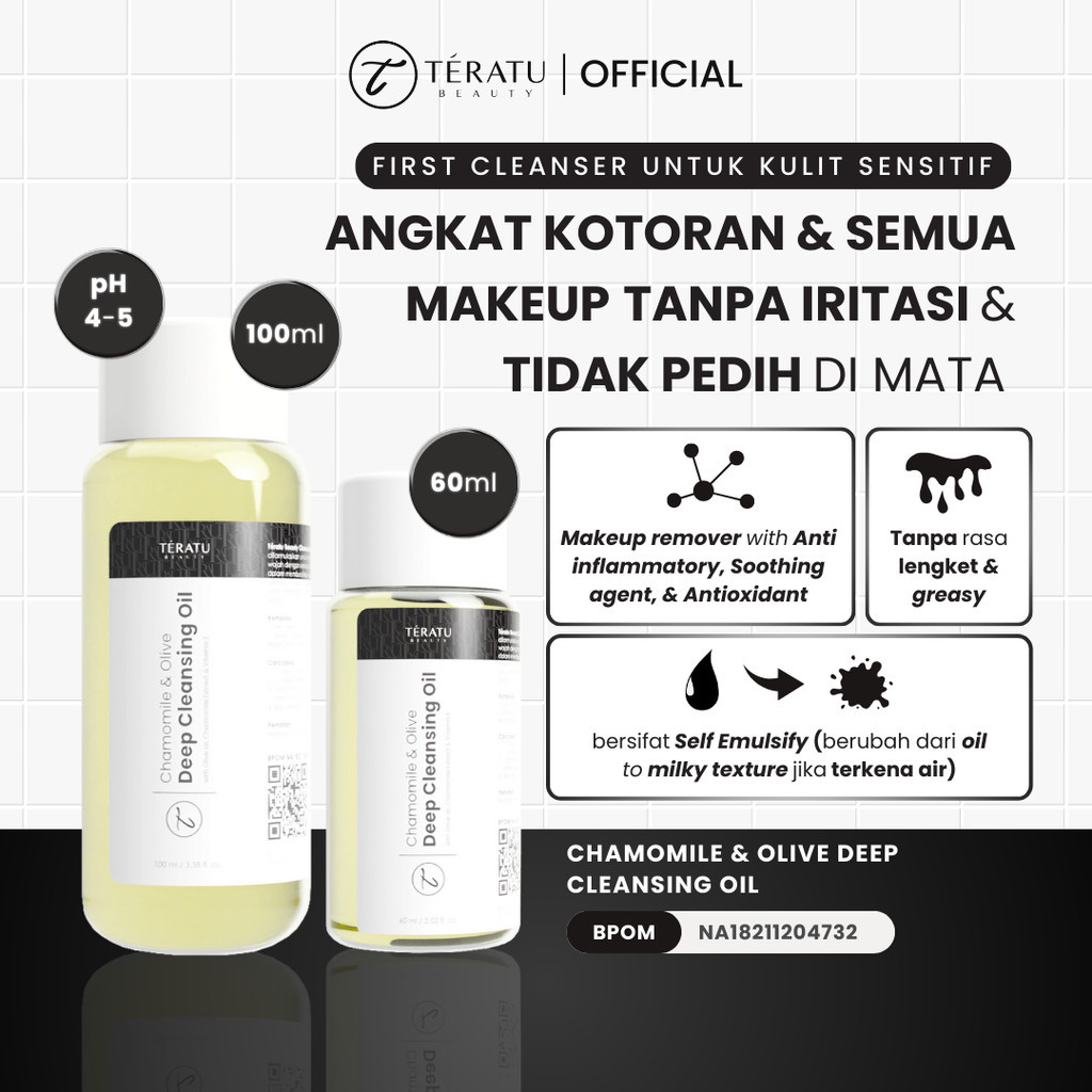 TERATU BEAUTY Chamomile & Olive Deep Cleansing Oil (Self Emulsified Oil to Milk formula ANGKAT KOTORAN DAN SEMUA MAKEUP
