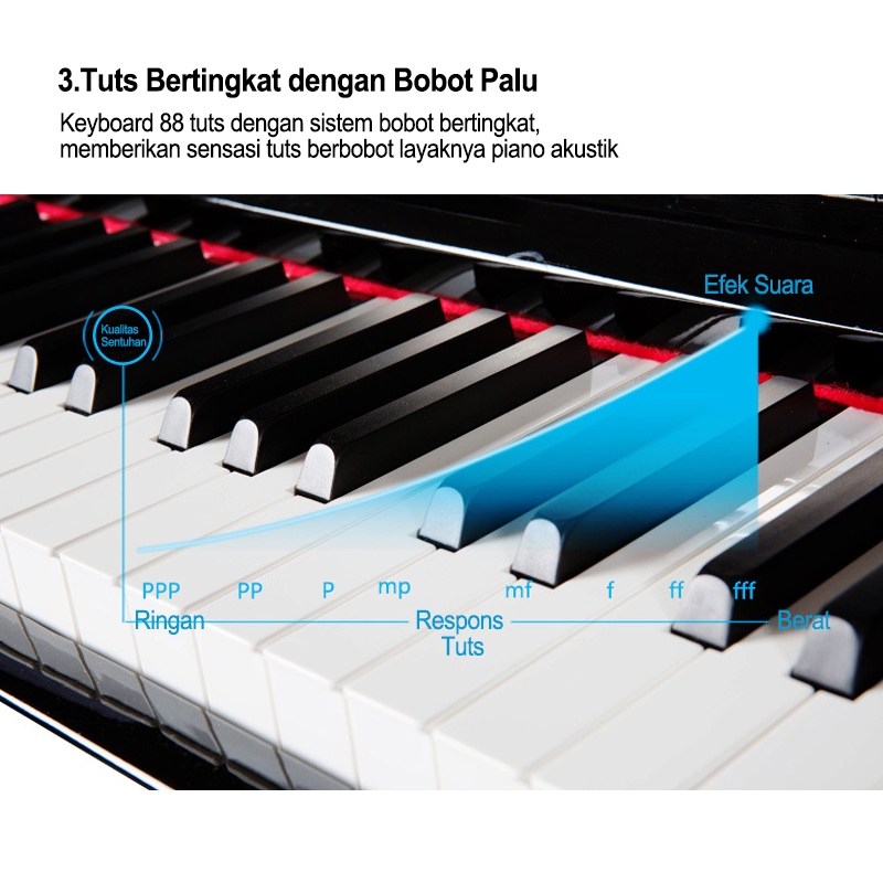 Benston Music - Piano Segitiga Digital dengan 88 Kunci untuk Rumah, Ujian, Pemula, Anak-anak, dan Latihan