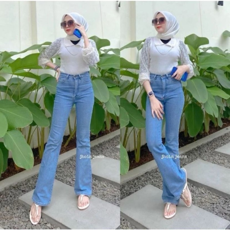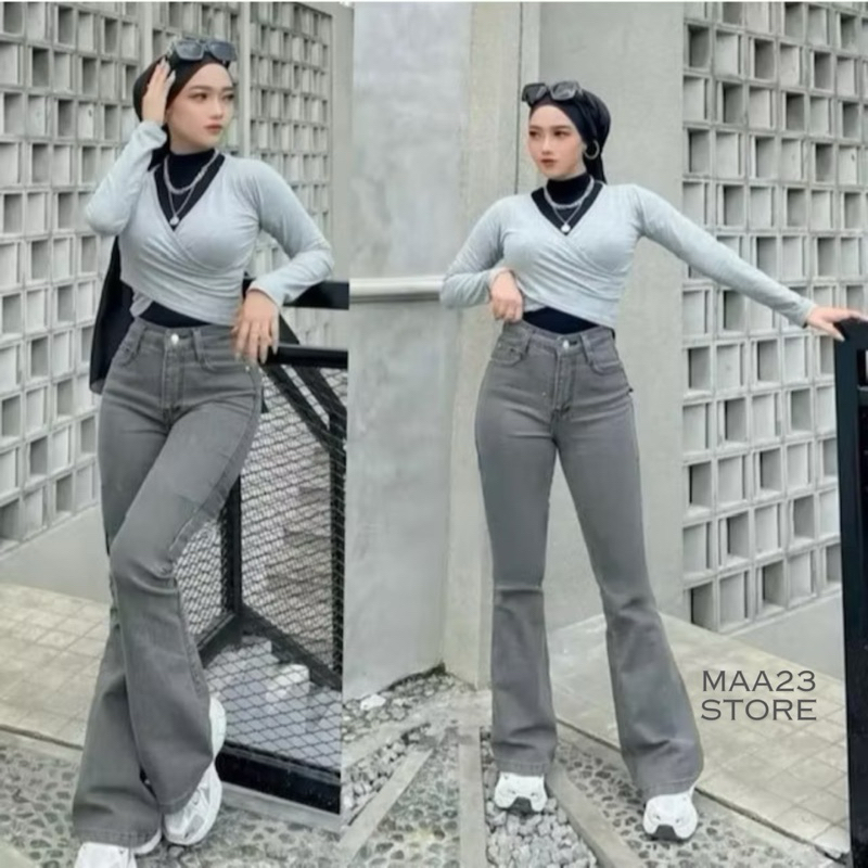 Highwaist Cutbray Jeans Wanita Celana Panjang Denim Cutbray