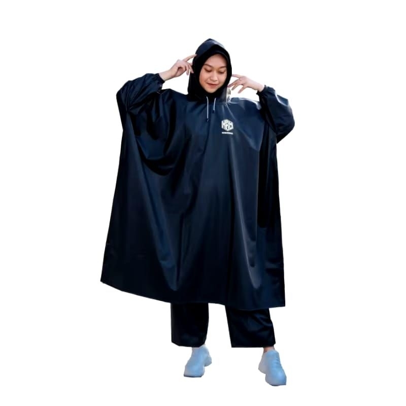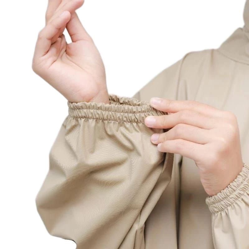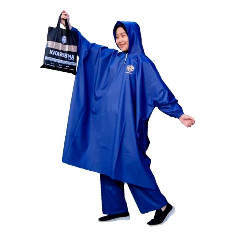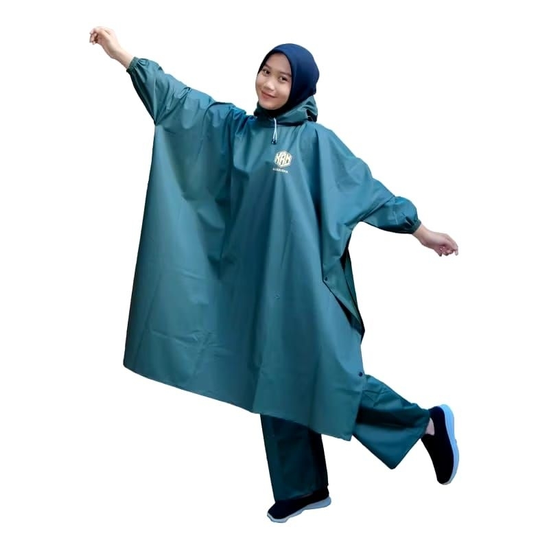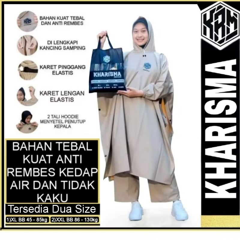 Kharisma Jas Hujan Jumbo Poncho + Celana Pria & Wanita Mantel Kelelawar Lengan Tebal Tahan Air Krem