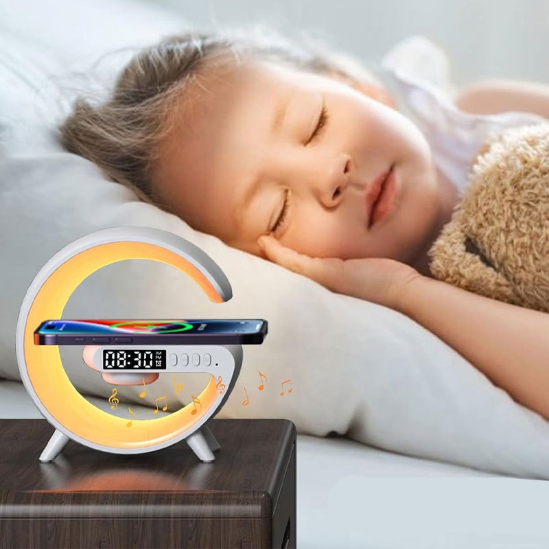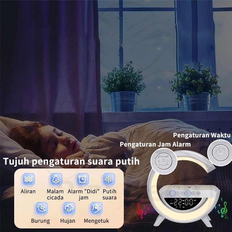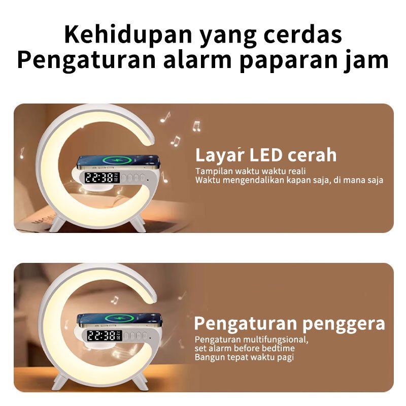 Speaker Bluetooth Nirkabel Mini dengan Lampu Meja RGB,smart Home Atmospheric Lamp Light multifunct RGB Night Light Desk Lamp Bluetooth Speaker, Pengisi Daya Nirkabel 15W